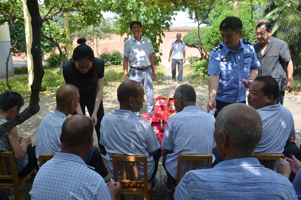 6月15日上午,该院干警顶着炎炎烈日,前往 “洛龙区安乐镇幸福院”看望这里的孤寡老人。干警们把慰问品送到老人们手上,与老人们亲切的交谈,详细了解他们的日常起居和身体状况,实地查看了宿舍、食堂等生活设施,并为他们解答关于老年人权益保障的相关问题。这些举动,让孤寡老人们感动不已,他们纷纷表示感谢。