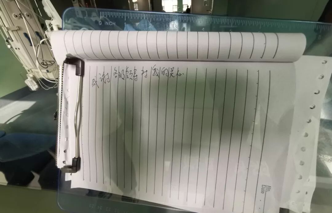 “感谢各级领导对我的关心”,还在ICU接受治疗的李世超无法开口讲话,便用纸笔写下了这句话,以表示对领导的谢意。