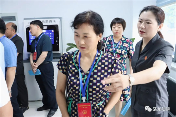 检查组一行先后来到关林人民法庭、“24小时自助法院”、2005审判庭,通过实地走访、查看资料、与干警交流、旁听民事案件庭审等方式,详细了解我院对《民法典》贯彻执行、民事审判工作开展及智慧法院建设等情况。