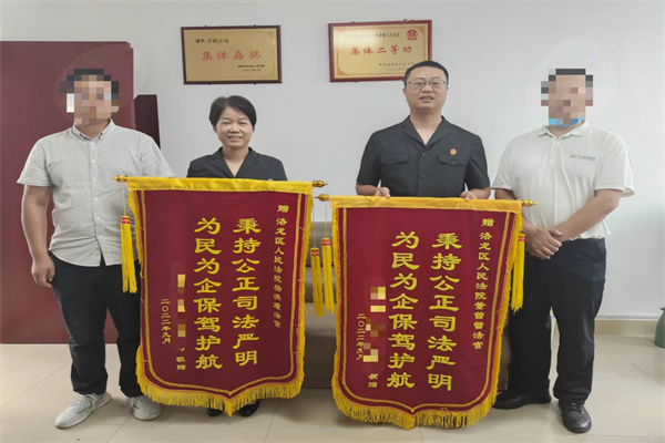 2022年9月22日,洛阳某农林公司送来了印有“秉持公正司法严明,为民为企保驾护航”字样的锦旗,感谢洛龙区人民法院李楼人民法庭员额法官董曾曾、杨洪璞为企业纾困解难、助力优化营商环境作出的努力。