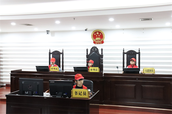 在刑事审判庭,小记者们以一起故意伤害罪案件为脚本,各司其职,分别饰演“审判长”、“审判员”、“人民陪审员”、“公诉人”、“法警”、“被告人”、“辩护人”等角色,从宣读法庭纪律到法庭调查、法庭辩论、法庭宣判,整个过程井然有序,完整再现了真实的刑事案件庭审现场,台下旁听的小记者们也更加直观地了解了审判流程,零距离感受法律的威严和神圣,体会法治的公平与正义。