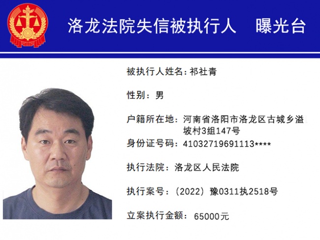 曝光!洛龙法院最新一批失信被执行人名单,有你认识的吗?