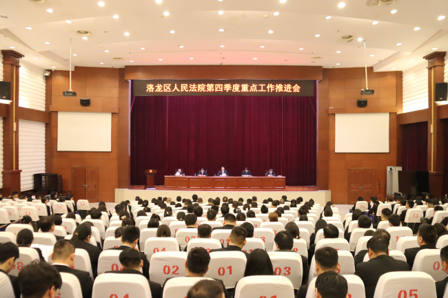 2025年已进入收官倒计时,为全面总结前一阶段工作,安排部署第四季度重点任务,10月14日,洛龙区法院召开第四季度重点工作推进会。党组书记、院长张海峰出席会议并讲话,全体院领导、正式干警和劳务派遣人员参加会议。会议传达了全市法院第四季度重点工作推进会精神,宣读了第三季度表扬通报,并由先进代表作交流发言。会议通报了前三季度审判质效数据和重点工作进展,聚焦“六大工程”的深入实施,对第四季度相关指标提升和工作推进进行了专项部署。