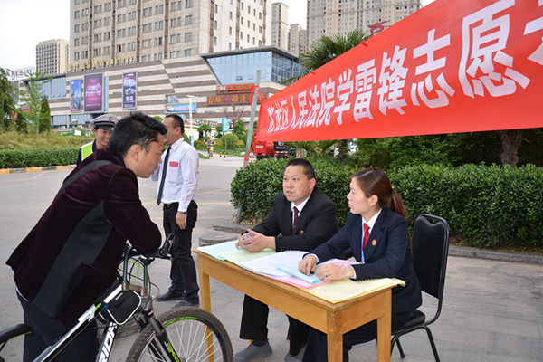 法院志愿者在开元大道街头设置法律咨询台,为来往群众提供法律咨询;义务清理绿化带垃圾,为广大市民提供一个清新、整洁的环境;协助指挥交通,微笑劝阻闯红灯行人和非机动车辆,并为来往游客指引道路,以实际行动志愿开展学雷锋活动,为第33届中国洛阳牡丹文化节贡献出一份力量。